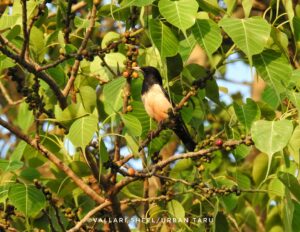 I went chasing the rosy starlings again that evening, as we monitored a beautiful peepul tree in Nehru Park. While the tree was full of these chattering birds, the show was stolen by a pair of coppersmith barbets in courtship. I felt extremely happy and satisfied as a birder in the city. I ended the day with my friend in the park, watching the sun setting behind the trees, hundreds and hundreds of rosies flying over, covering the whole sky, the scene nothing less than astonishing.